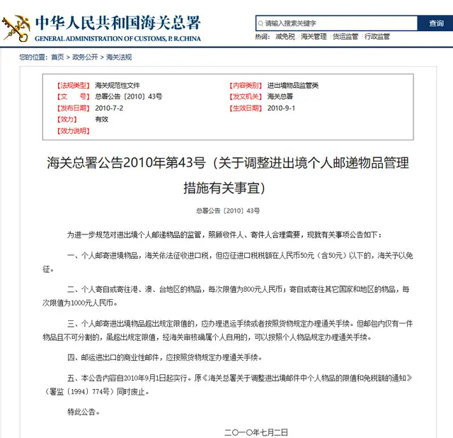海關(guān)總署的這項(xiàng)新政策放寬了個(gè)人物品郵寄的限值,便利了跨境購物
